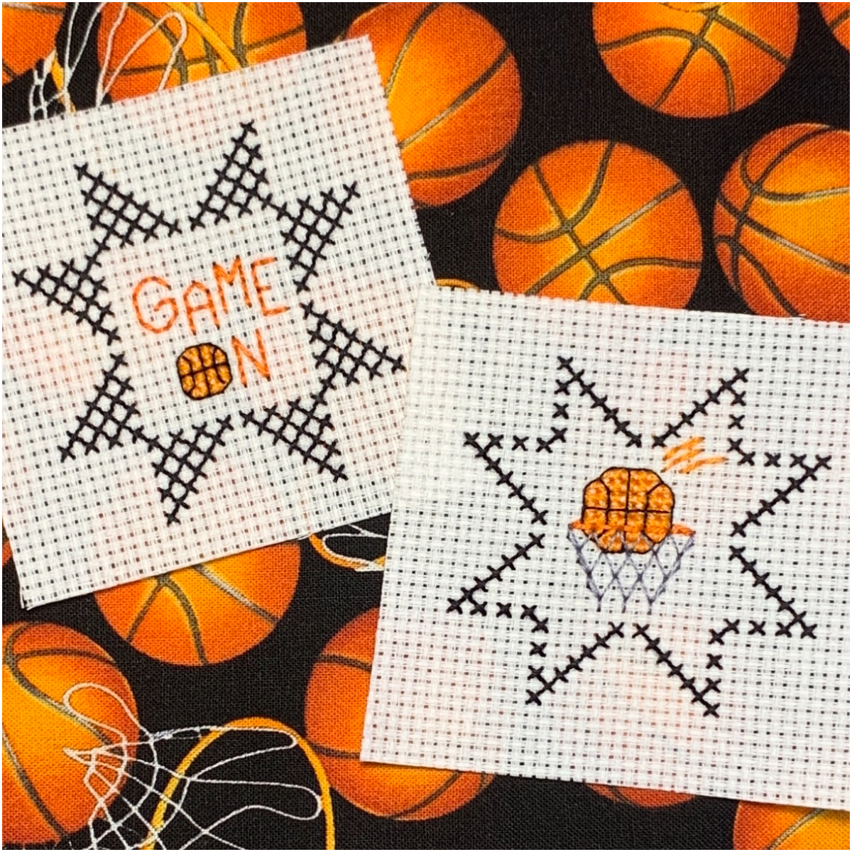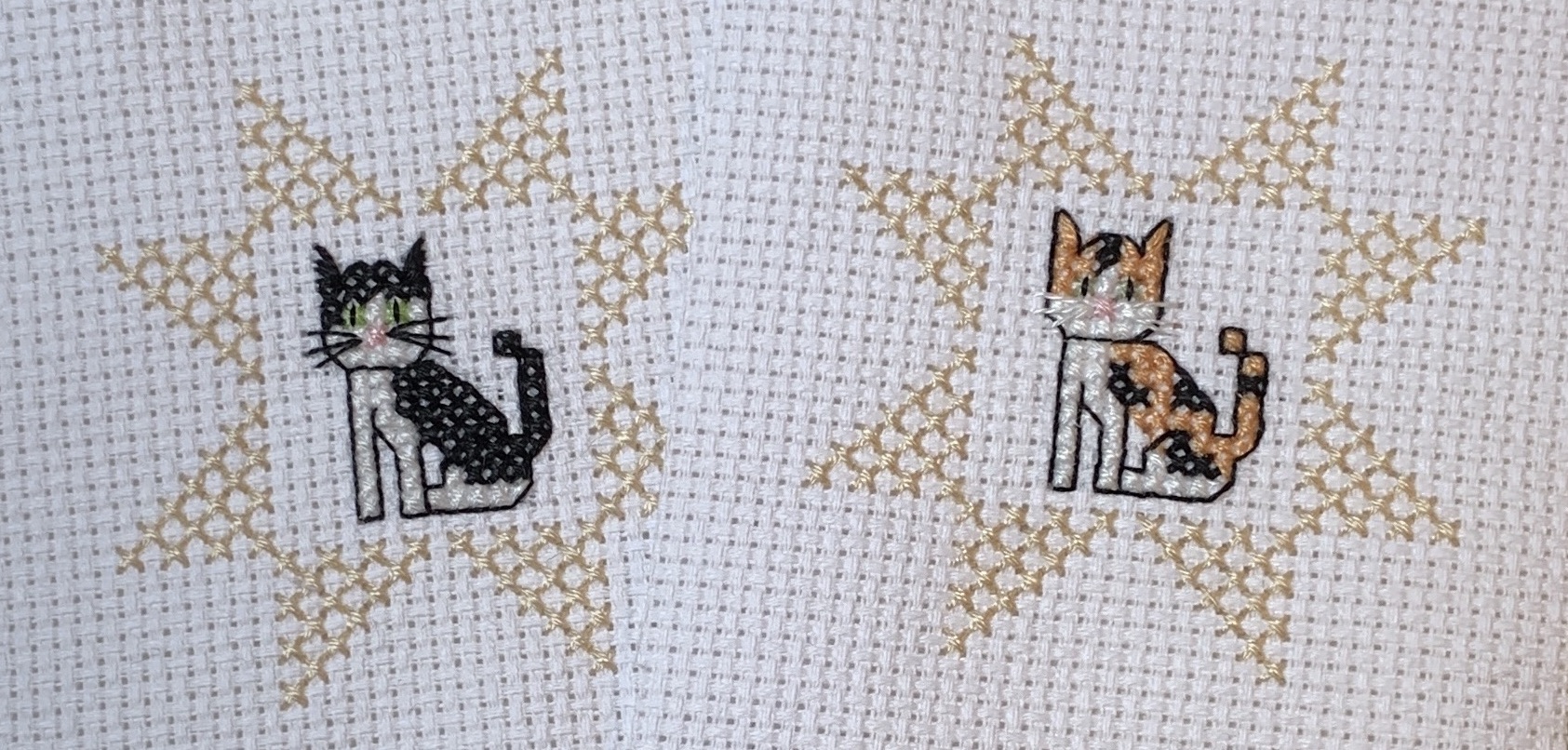 A popular cross stitch pattern done in a new fabric...can be found on My Etsy Shop